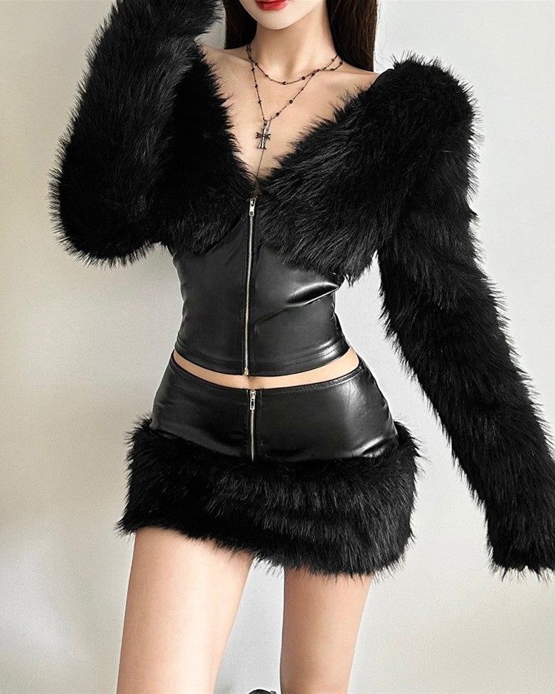 黒と白のベーシックな起毛加工のスリムフィット長袖Tシャツ、フロントショルダー