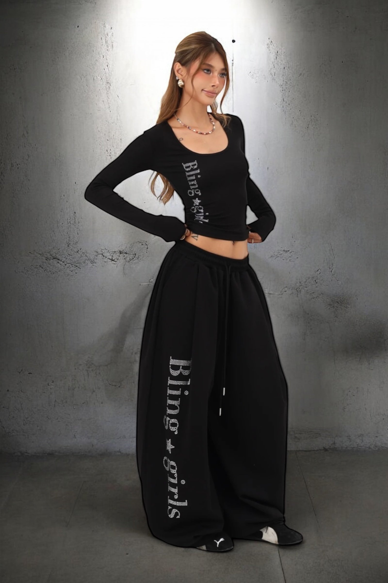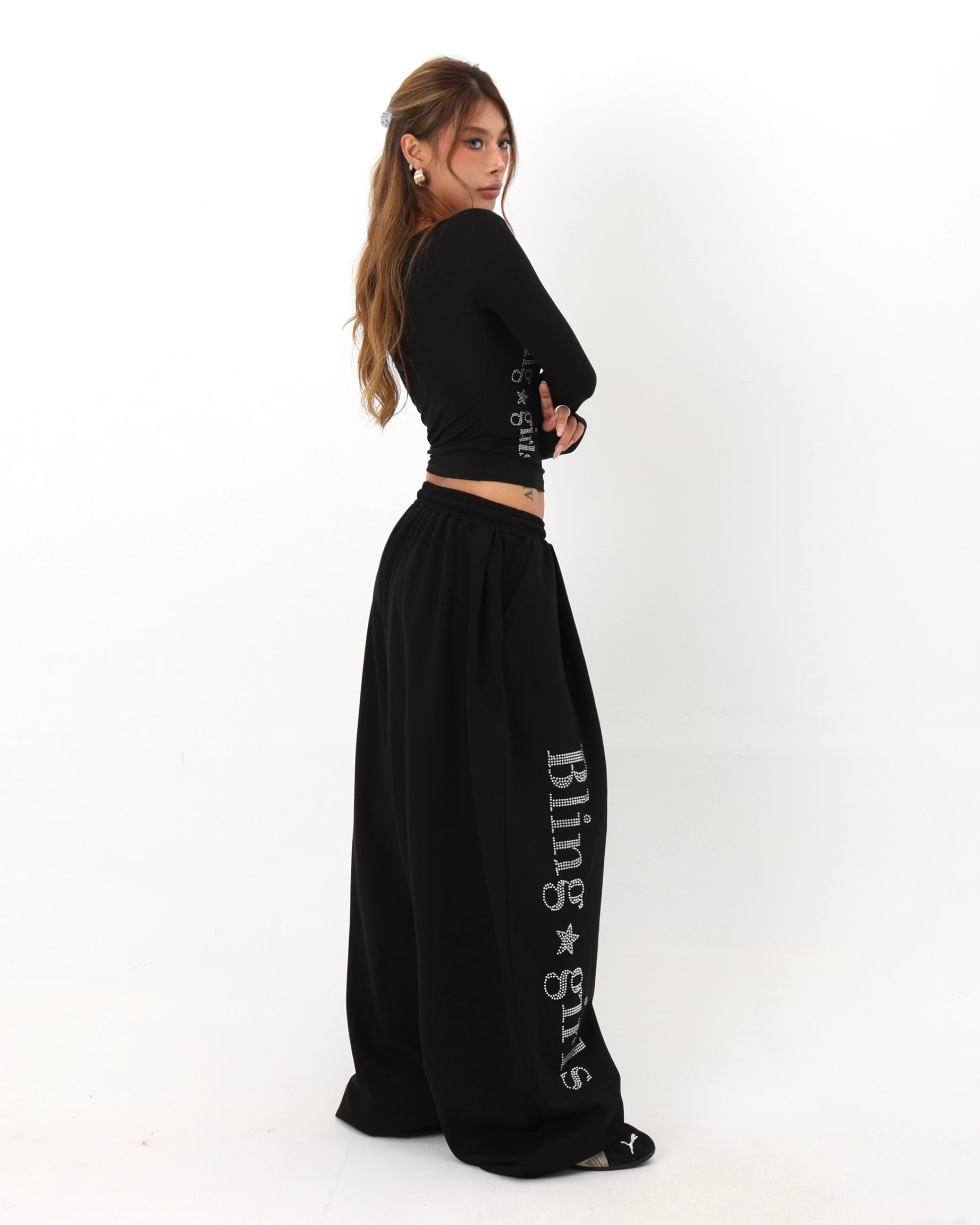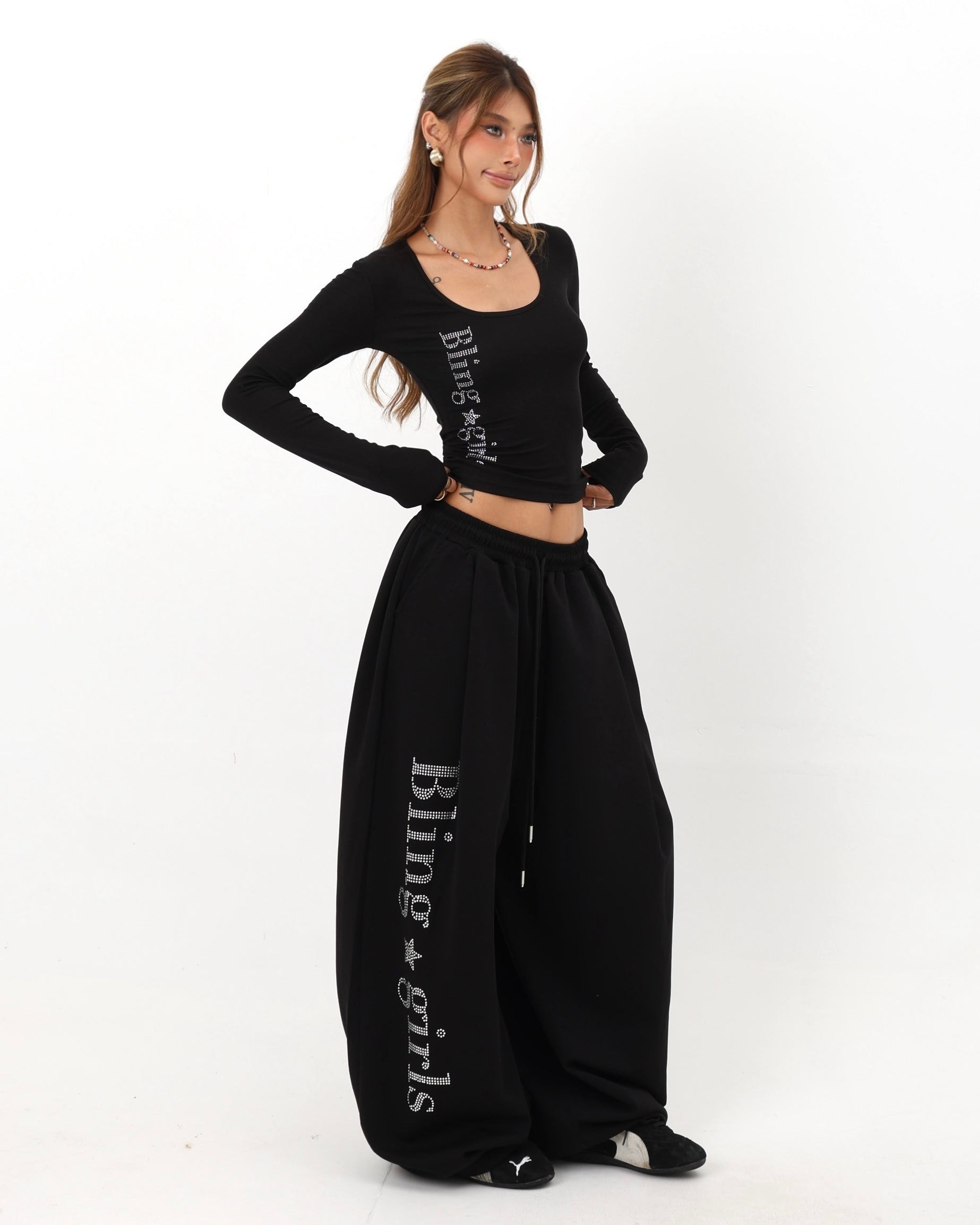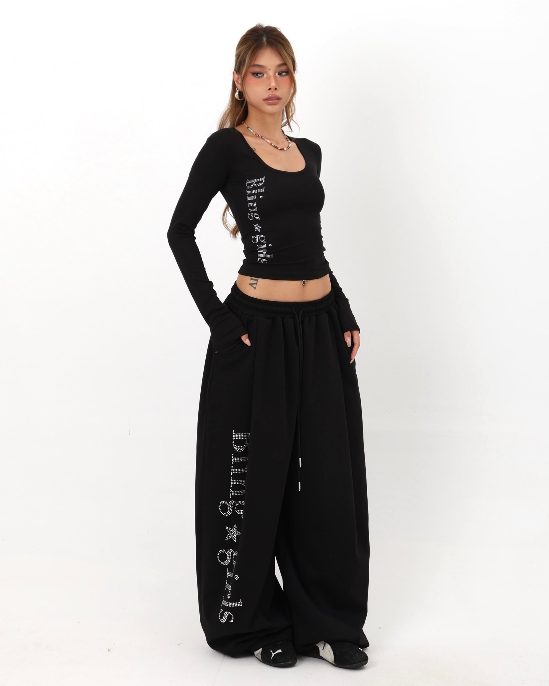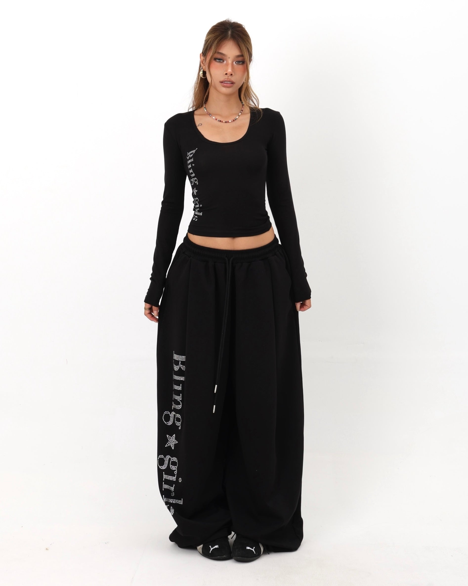 【Set-Up】Bling Logo Scoop Top & Extreme Wide Sweatpants Set-Up mry001890